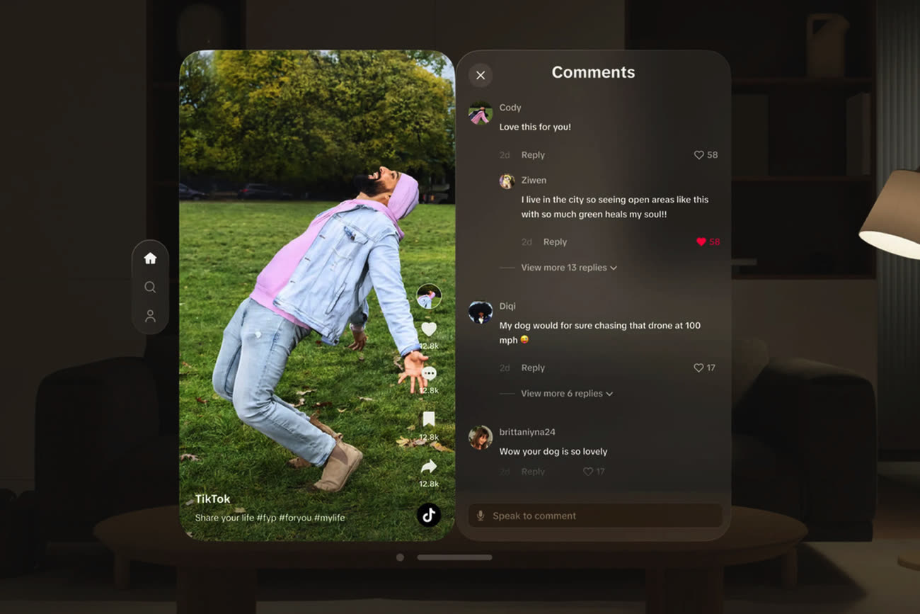 Le réseau social reste accessible pour les utilisateurs de Vision Pro via un navigateur web, mais c’est moins pratique. L’application tirait parti du large espace d’affichage disponible en exposant les commentaires et les profils dans un panneau latéral, à côté de la vidéo verticale. Sans TikTok, visionOS ne compte plus aucune application native officielle pour un réseau social majeur.